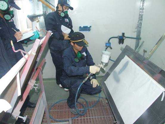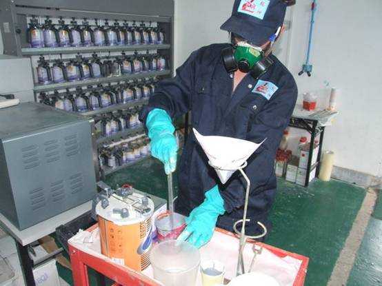 老師們進行調(diào)配底漆