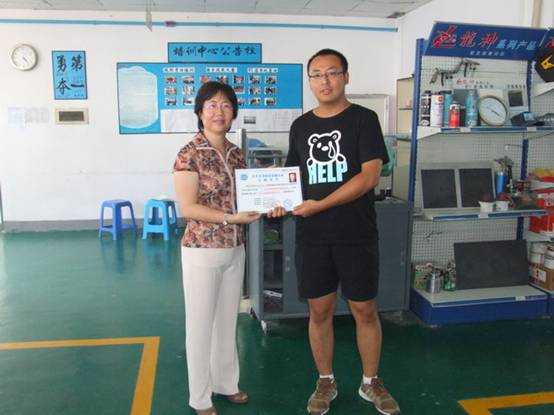 我司彭經(jīng)理頒發(fā)“汽車車身修復(fù)技能認證合格證書”